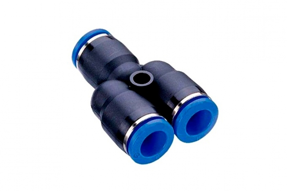 PY união em Y Conexão pneumática união em Y. FLUIDO: Ar comprimido PRESSÃO DE TRABALHO: -0,1 ~ 10 bar ( -14,5 ~ 150 psi) TEMPERATURA DE TRABALHO: 0 ~ 60º C APLICAÇÃO: Tubos de poliuretano ou nylon.
