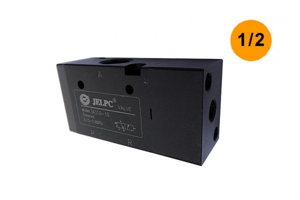 Válvula pneumática 3 vias 2 posições. Acionamento por piloto e retorno por mola.